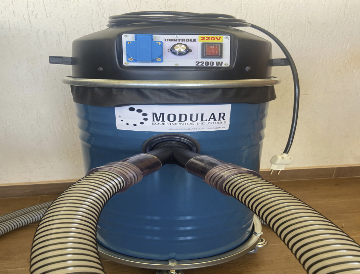 - Sistema de sucção composto de dois motores de turbina simples com 1100 watts cada, com filtros individuais permanentes e um filtro principal confeccionado com tecido de alta densidade (120g/m²), garantindo alto poder de filtragem.